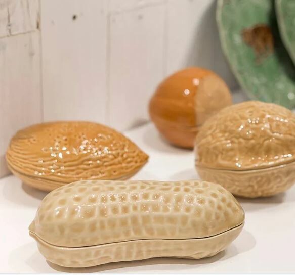 What a stunning deorative piece! This unique and original bowl by Bordallo Pinheiro cab be used for elegant serving or as a storage dish. It consists of two pieces, with the top part functioning as a lid. The hazelnut is decorated with refined relief lines, creating a natural and realistic appearance. With this distinctive serving dish, your table will always look irresistible.le of the 19th century. Today, the duke it is the perfect, feathered piece of art to bring joy to your kitchen!
