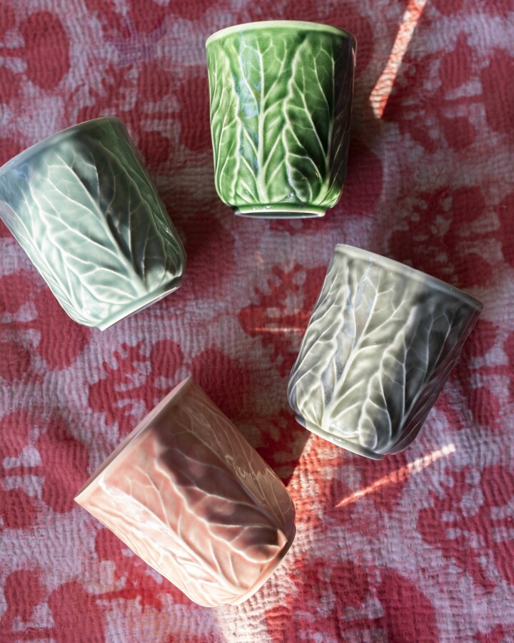 Surprise your guests by serving their favourite coffee in these charming, hand-glazed cups. Each cup is a small work of art: still cast in traditional moulds and glazed with the greatest attention to every vein and detail of the iconic cabbage leaf design. In close collaboration with the Bordallo Pinheiro workshop, VAN VERRE has extended the cabbage collection with new cups in 4 beautiful colours. Mix and match them endlessly for a cheerful and inviting coffee moment!