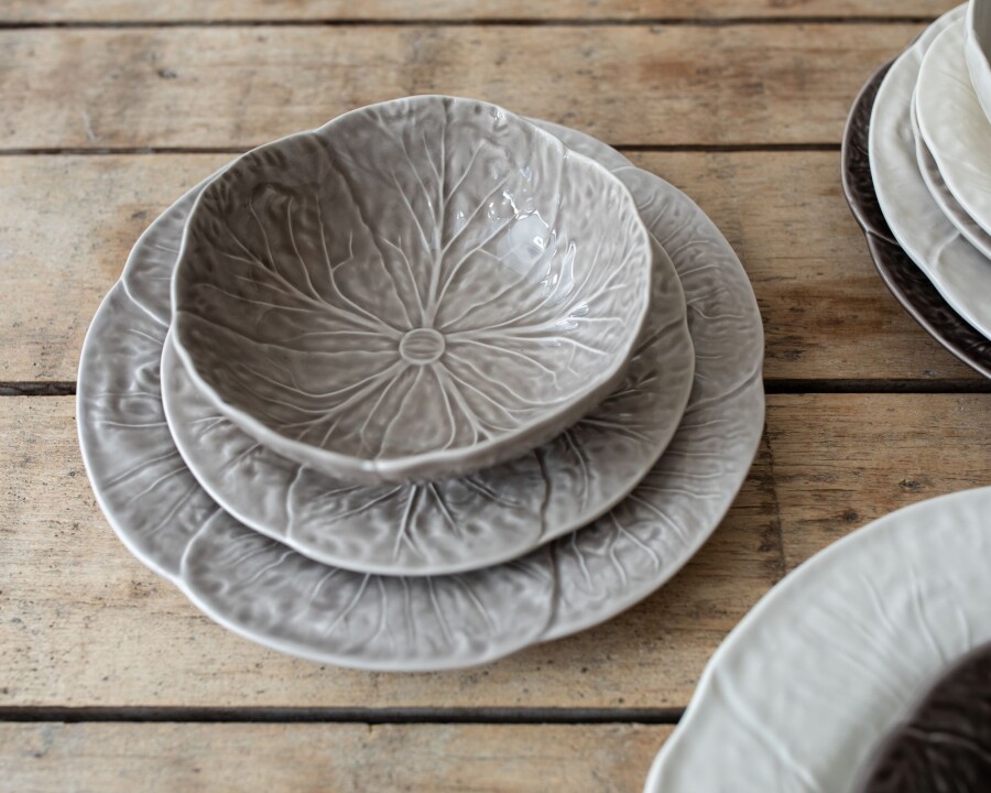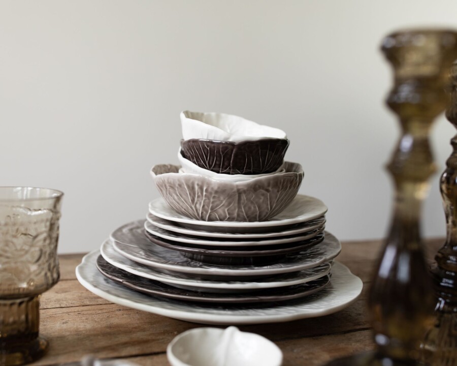 Wouldn't it be great to begin your day with these bowls filled with fresh fruits and oats? The cabbage leaf bowls also form a perfect base to present any other dish in a beautiful way. So with these bowls, you put a piece of crafmanship on the table! These cabbage items are still cast in traditional moulds and are glazed following every vein of the leaf. In close collaboration with Bordallo Pinheiro workshop, VAN VERRE extended the cabbage collection with new plates and bowls in contemporary colours. Combine them endlessly for a cheerful table setting!