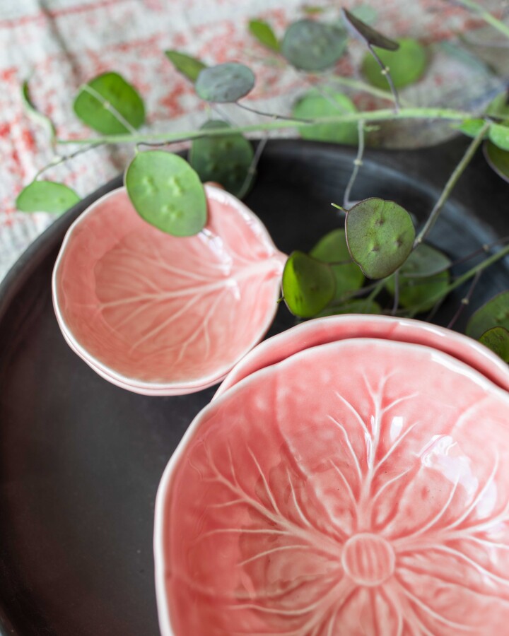 Wouldn't it be great to begin your day with these bowls filled with fresh fruits and oats? The cabbage leaf bowls also form a perfect base to present any other dish in a beautiful way. So with these plates, you put a piece of crafmanship on the table! These cabbage items are still cast in traditional moulds and are glazed following every vein of the leaf. In close collaboration with Bordallo Pinheiro workshop, VAN VERRE extended the cabbage collection with new plates and bowls in contemporary colours. Combine them endlessly for a cheerful table setting!