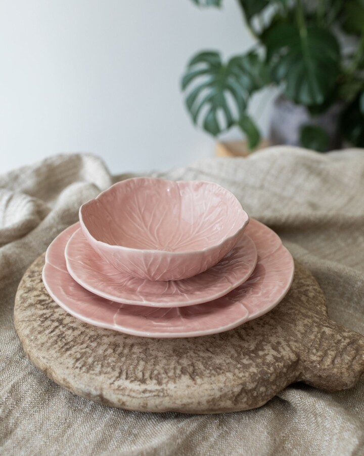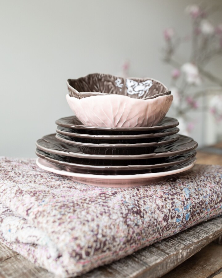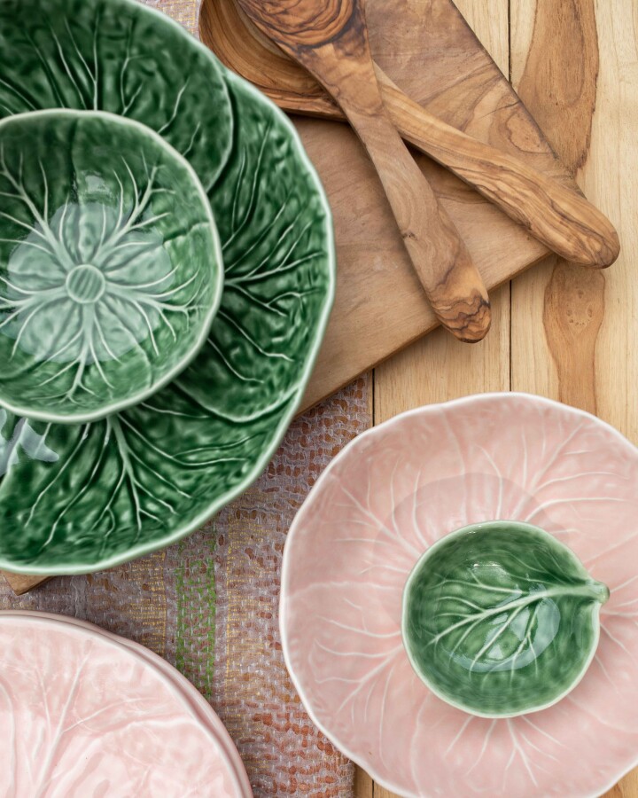Wouldn't it be great to begin your day with these bowls filled with fresh fruits and oats? The cabbage leaf bowls also form a perfect base to present any other dish in a beautiful way. So with these bowls, you put a piece of crafmanship on the table! These cabbage items are still cast in traditional moulds and are glazed following every vein of the leaf. In close collaboration with Bordallo Pinheiro workshop, VAN VERRE extended the cabbage collection with new plates and bowls in contemporary colours. Combine them endlessly for a cheerful table setting!