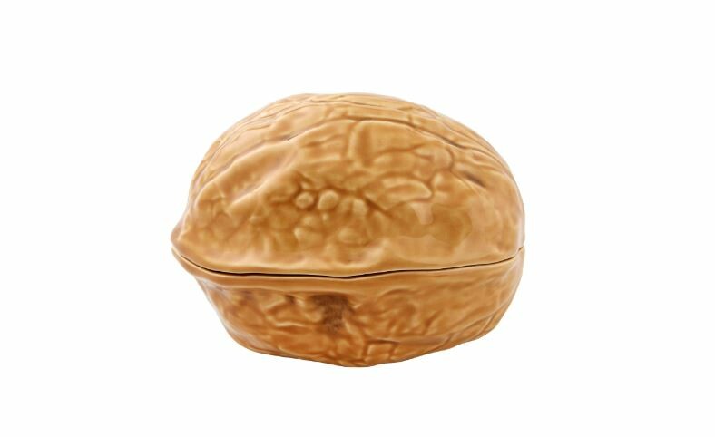 Een echte blikvanger! Deze bijzondere en originele schaal, uitgevoerd in de vorm van een walnoot, komt uit ons assortiment van Bordallo Pinheiro. Het elegante serveer- of opbergschaaltje bestaat uit twee delen, waarbij het bovengedeelte fungeert als deksel. De amandel is voorzien van verfijnde reliëflijnen, waardoor een natuurgetrouwe en realistische uitstraling ontstaat. Met dit unieke stuk maak je elke tafelsetting onweerstaanbaar.