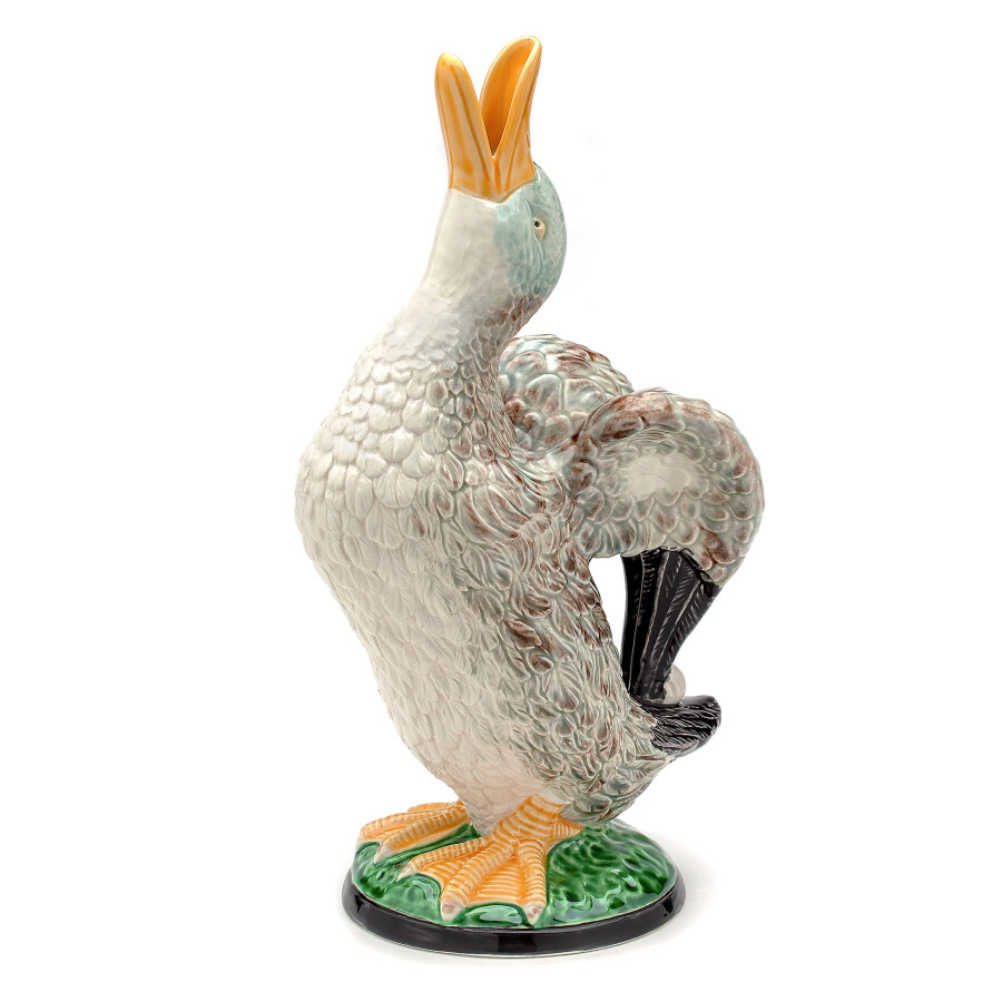 Stel je voor dat Morris je eettafel zou sieren: een direct, levendig onderwerp om een geweldige avond mee te beginnen! Elke Bordallo waterkan wordt met de grootste zorg gemaakt en onthult een grote artistieke, creatieve en technische kwaliteit. Elke contour van de klei wordt gevolgd door de kwast van de vakman, met deze zeer realistische, goed uitziende Duke als resultaat. Bordallo Pinheiro is een gevestigde naam als het gaat om het beste artistieke keramiek van Portugal. In 1884 startte hij zijn keramiekproductie en slaagde erin ontwerpen te bedenken die nog nooit eerder vertoond waren. Hij kende onmiddellijk succes en sindsdien vestigde zijn kunst zich als een voorbeeld van de 19e eeuw. Tegenwoordig is de hertog met veren het perfecte kunstwerk om en vreugde in je keuken te brengen en wijsheid op tafel!