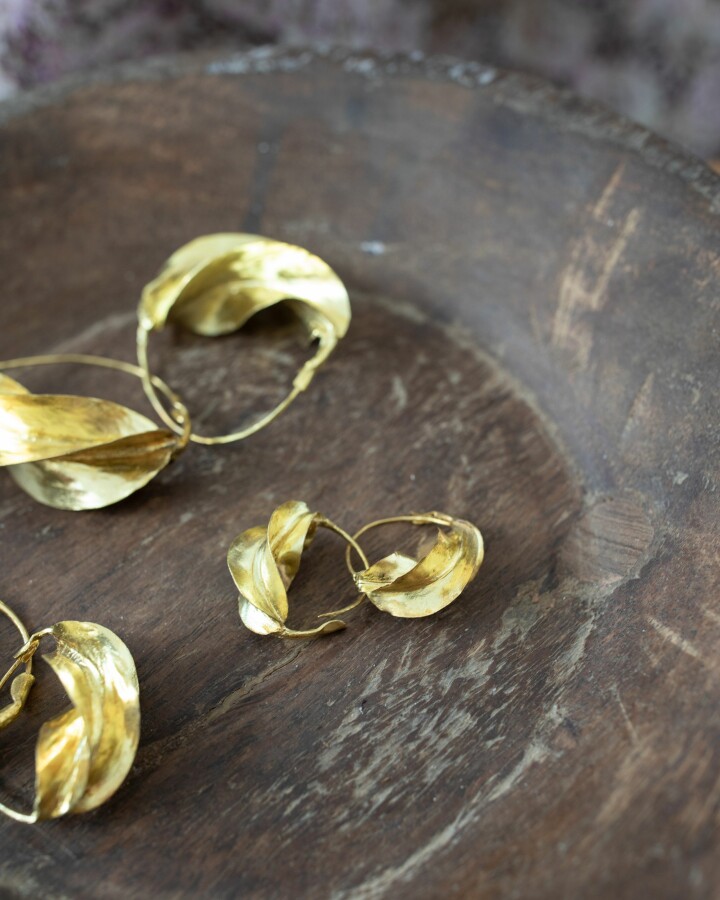 Deze oorbellen zijn traditionele sieraden van de nomadische Fulani-stam in West-Afrika. Fulani-mannen snijden, slaan en draaien het messing vakkundig tot prachtige, glanzende oorbellen. Elk paar wordt met de hand gemaakt en is daarom een beetje uniek. Het messing is licht flexibel zodat de oorbellen voorzichtig kunnen worden bijgesteld. Deze oorbellen zijn originele en traditionele sieraden van de nomadische Fulani stam in West-Afrika. Fulani ambachtsmannen snijden, slaan en draaien messing vakkundig tot prachtige,verfijnde en delicate oorbellen. Elk paar is handgemaakt en daardoor een tikkeltje uniek. Het materiaal is goud glanzend van kleur en licht flexibel waardoor de oorbellen eenvoudig vorm gebracht kunnen worden. Met hun traditionele sluiting is het een juweel om te dragen!