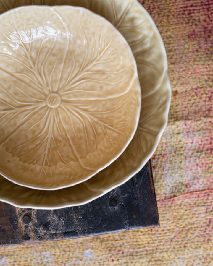 Wij zijn dol op deze koolbladschalen voor het serveren van salades of andere verse maaltijden. Zelfs een hoofdgerecht salade past in deze prachtige kommen, maar ook je heerlijke pasta's passen prima. Met deze schaal zet je een beroemd kunstwerk op tafel! De koolblad items worden nog steeds in traditionele mallen gegoten en worden tot in elke nerf van de bladeren geglazuurd. In nauwe samenwerking met Bordallo Pinheiro aardewerk heeft VAN VERRE de koolblad collectie uitgebreid met nieuwe borden en schalen in eigentijdse kleuren. Combineer ze eindeloos voor een vrolijke tafelsetting!